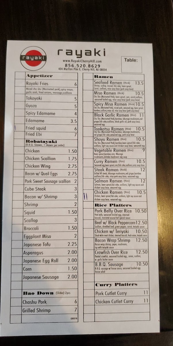 Welcome to Rayaki Ramen Cherry Hill, a delight for ramen enthusiasts nestled at 404 Marlton Pike East, Cherry Hill Township, NJ. This vibrant eatery merges delicious flavors with an inviting atmosphere adorned with anime murals, creating a unique dining experience.